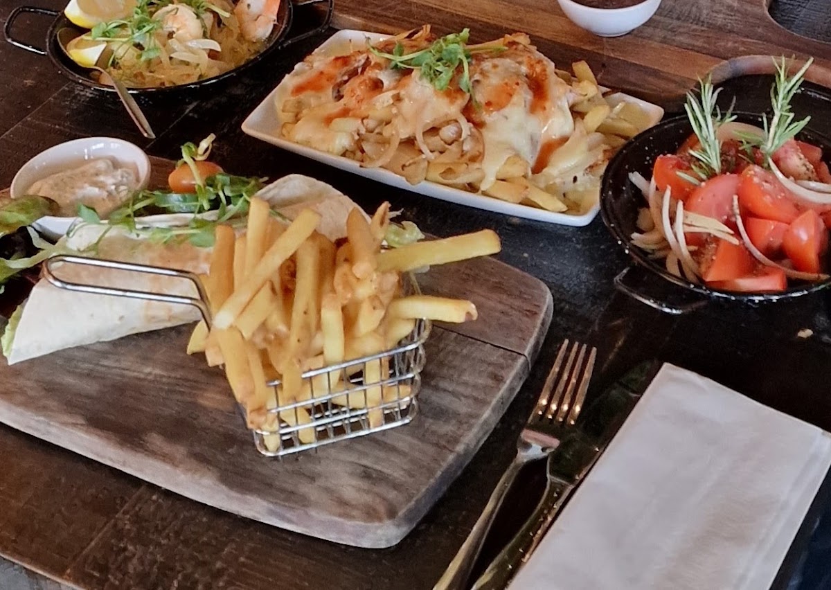 If you're in the mood for something lighter, the Salt and Pepper Squid and Patatas Bravas (crispy potatoes served with a spicy tomato sauce) are perfect options to share with friends. For a unique twist, try the Dirty Fries, topped with gooey cheese and sweet chili sauce, or the Cheesy Chips, another crowd-pleaser that brings comfort food to a whole new level.