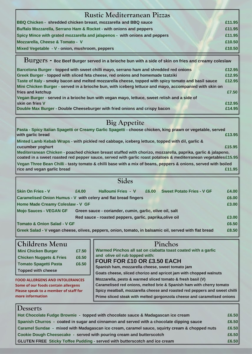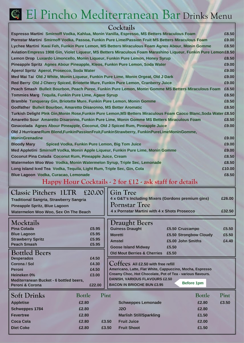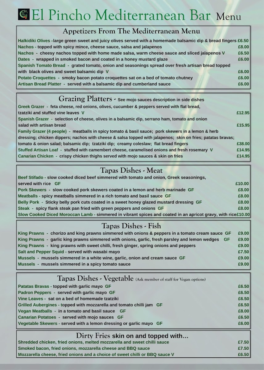 The menu at El Pincho is a vibrant celebration of Mediterranean cuisine, featuring a variety of tapas-style dishes designed for sharing. From the rich, smoky flavors of grilled meats to the fresh and zesty Mediterranean vegetables, the ingredients shine in every dish. Standouts include the classic Spanish patatas bravas with a flavorful tomato sauce, and the grilled octopus, which is perfectly tender and packed with chargrilled depth. The bar menu complements the food offering with a selection of carefully curated wines and cocktails, all of which elevate the dining experience.